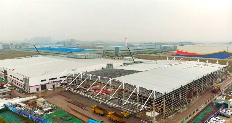 近日,四川內(nèi)江飲料生產(chǎn)基地廠房主體鋼構已圓滿收工,目前正聚焦于外立面的施工細節(jié),同時展開倉庫屋頂頂棚鋼板的鋪設工作。